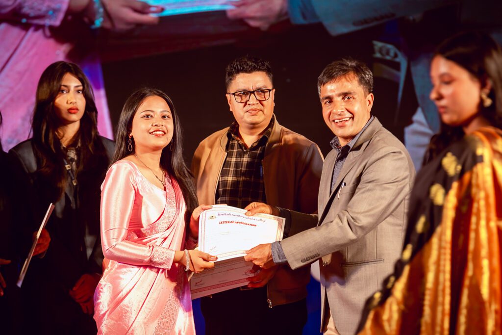 A key highlight of the event was the recognition of outstanding students. Certificates were awarded to class representatives, and Head Boy and Head Girl. The management team also honored students with tika, adding a traditional and respectful touch to the ceremony.