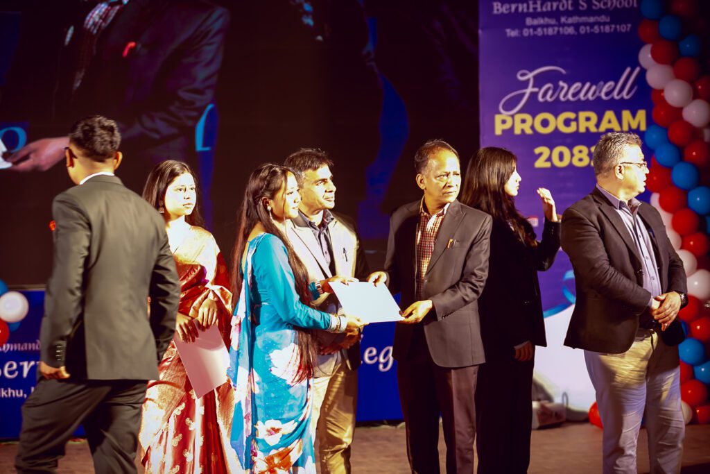 Kathmandu Bernhardt School/College successfully organized a grand Farewell Program 2082 for its Grade 12 students, marking an emotional and memorable milestone in their academic journey. The event took place on Sunday at Academy Hall, Kamaladi, and featured a vibrant mix of cultural performances and formal ceremonies.